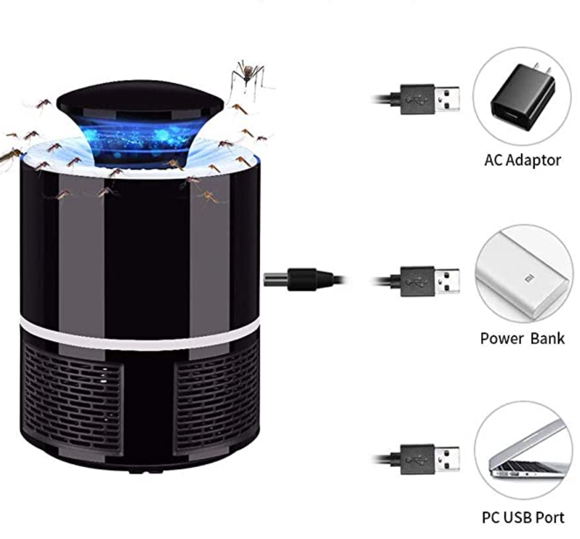 - ✔FÁCIL DE USAR y LIMPIAR : El puerto de carga USB es simple y conveniente. LED de 5W, ahorro de energía y protección del medio ambiente, proporciona luz brillante y suave con hasta 50000 horas de vida útil. La lámpara antimosquitos tiene un receptáculo de red de entrada de aire y un ventilador de CC, puede girarla hacia la dirección de desbloqueo y desmontar la caja de almacenamiento para extraer los cuerpos del mosquito adentro.