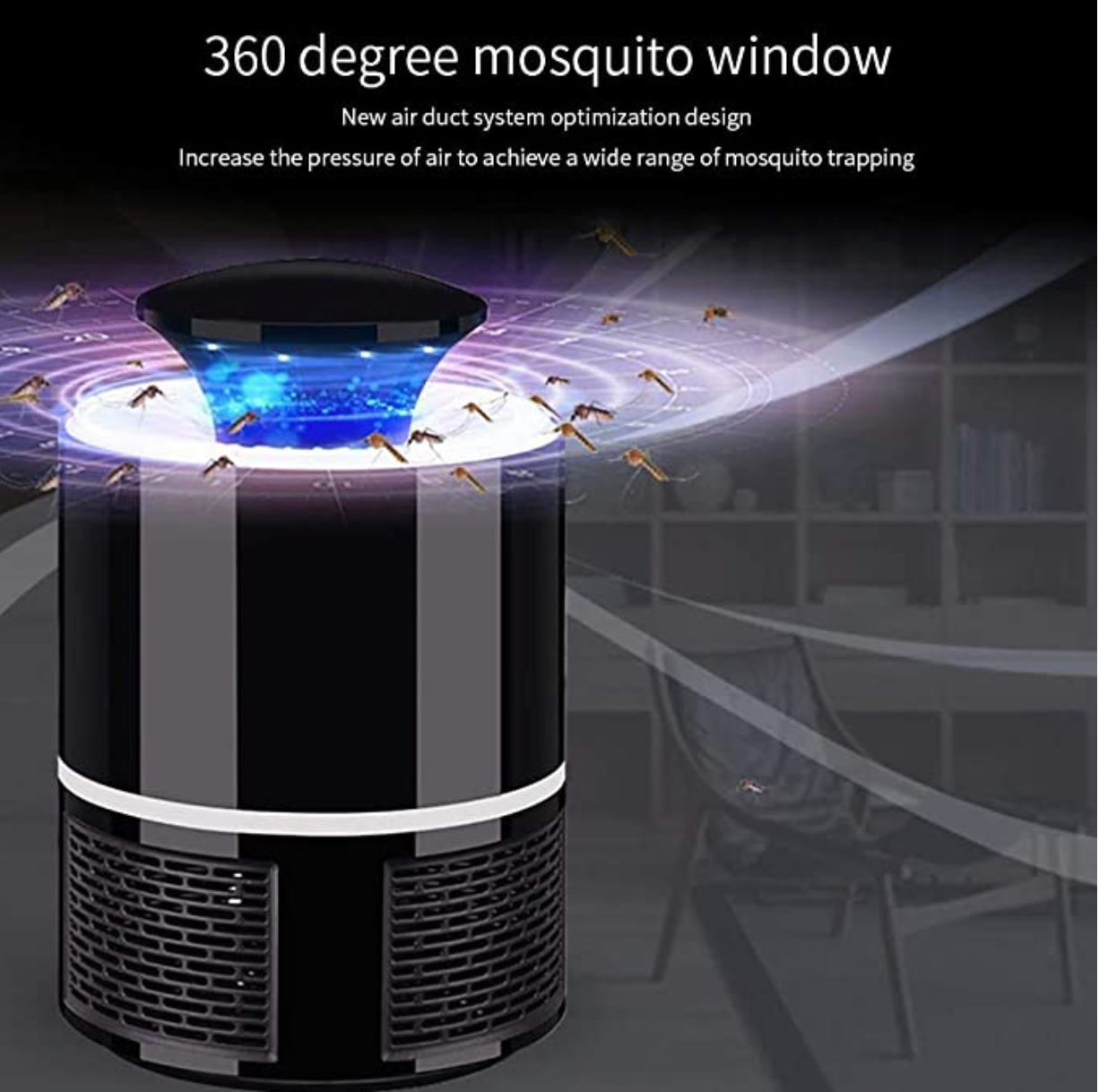 - Esta lámpara interior para mosquitos tiene una atracción de mosquitos de 360 grados de gran alcance, ventilador de alta velocidad para chupar fotocatalizadores que mata mosquitos / polillas / mosquitos / insectos molestos y otros insectos voladores y los mantiene en la caja contenida interna hasta ellos mueren. El área aplicable es de 45-80 metros cuadrados. Mientras tanto, es silenciosa, no perturba su dulce sueño.